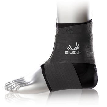 The BioSkin™ Standard Ankle Skin delivers medical-grade compression and light support to the foot and ankle. Constructed with BioSkin’s proprietary material, the Ankle Skin is lightweight, breathable and hypoallergenic. It’s also lined with microfleece for a touch of softness against the skin and gives it the ability to wick moisture quickly, even during exercise. The sleeve pulls on like a sock and secures with the Velcro tabs in the back. For additional support, use the optional Figure 8 Wrap to surround the ankle joint and limit unwanted movements.