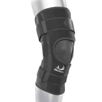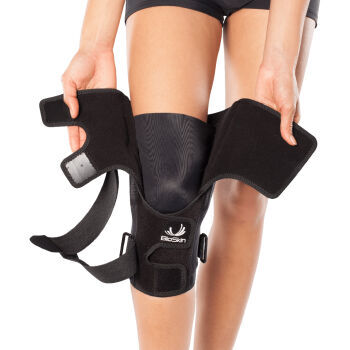The BioSkin™ Crossfire Front Closure offers optimal support for knee instability. This brace protects the MCL, ACL and other ligaments, providing stability while limiting unwanted twisting of the knee joint. It has a wrap-around design for custom fit and a donning sleeve for light compression and easy application. The light, thin, breathable material behind the leg is cut to comfortably fit a variety of leg sizes. There is no seam in the popliteal area which helps minimise irritation and bunching. The stretchy thigh and calf straps allows for flexion and extension of muscles.