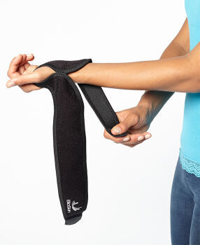 The BioSkin™ Boomerang Wrist Wrap provides compression and support for minor wrist problems. The wrap is easy to apply.