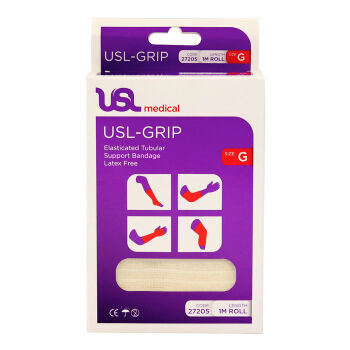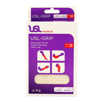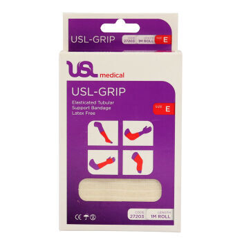 USL Grip Tubular 1m is a latex free, elasticated tubular bandage designed to provide support and compression. A practical easy to use solution to the problems posed by soft tissue injuries and sprains. Can be applied to sensitive areas using an applicator. Stays in place with no clips or tape.