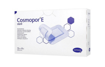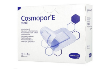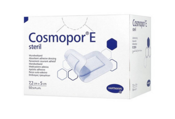 Cosmopor E is a self-adhesive sterile island dressing that is kind to the skin. It has an absorbent pad that cushions and protects the wound. The pad is covered with a non-adherent layer to prevent it from sticking to the wound, protecting the wound bed and allowing for atraumatic dressing changes.