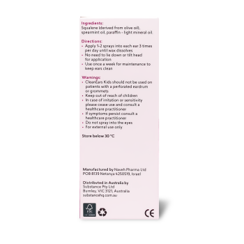 CleanEars contains squalene (derived from olive oil), mineral oil and spearmint oil.