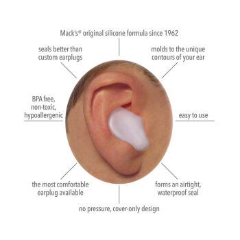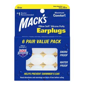 Mack's Silicone Earplugs are the original mouldable silicone putty earplugs now in this handy 6 pair pack. The ultimate in earplug comfort, Mack's silicone putty moulds to the unique contours of any ear to seal out water and help prevent swimmer's ear.
