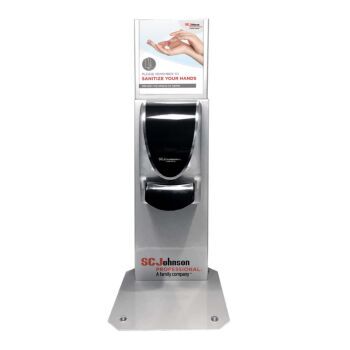 Stylish dispenser stands to aid in promoting hand sanitising.