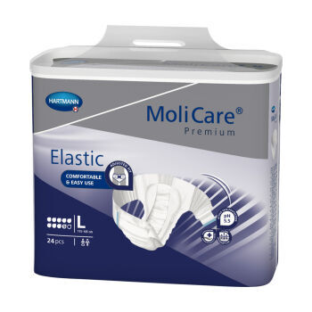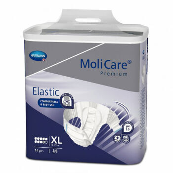 MoliCare® Premium Elastic 9D better care made easy for severe incontinence. Replaces MoliCare® Premium slip Maxi. Comfort and security to suit all body shapes thanks to its elasticated side panels.