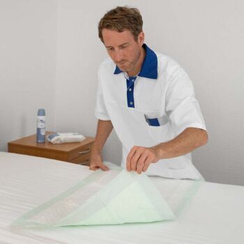 MoliCare Premium Bed Mat 8 drops with cellulose fluff containing absorbent core and waterproof polyethylene backsheet for reliable bed or chair protection. Suitable for use as a direct incontinence bed mat or as additional bed protection when used with continence pads.
