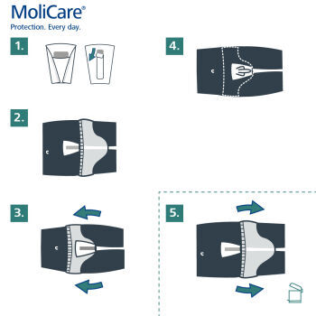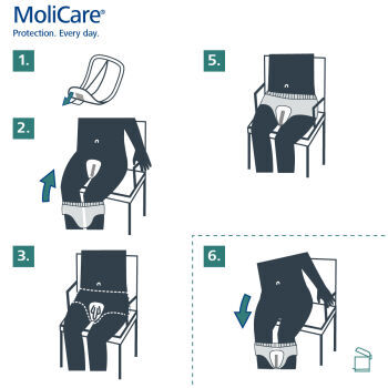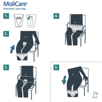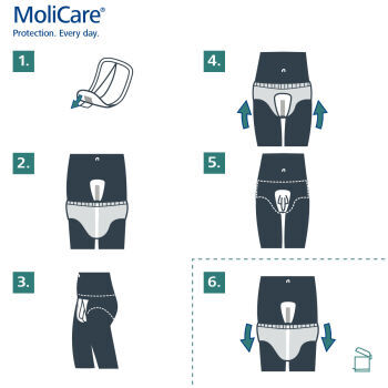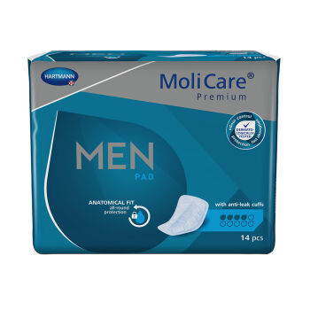 MoliCare Premium Men Pad are designed to be worn with your own underwear. The soft, textile backsheet and adhesive strip enhances comfort and ensures the pouch stays in place. As protection against rewetting, MoliCare Premium Men Pads features a Dry-Plus layer.