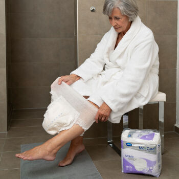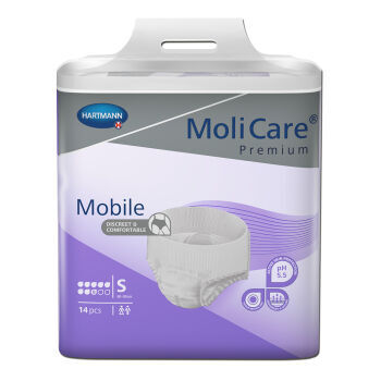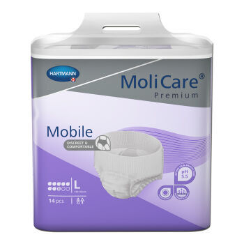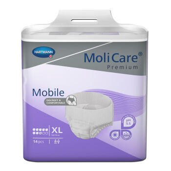 MoliCare Premium Mobile pull up pants look and feel like normal underwear and offer the highest level of leakage protection. Its three way protection system gives MoliCare Mobile extra-strong leakage protection. The unique DryPlus non-woven layer locks liquid away rapidly to keep the skin comfortably dry.