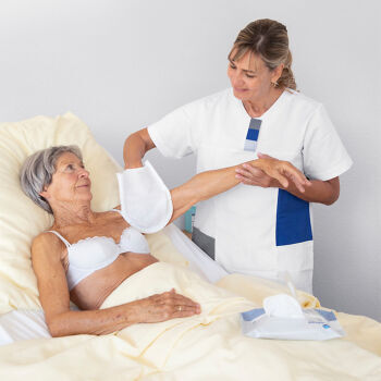 MoliCare Skin Impregnated Wash Gloves with nourishing and moisturizing Panthenol and Aloe Vera. These offer a quick and gentle solution for whole body washing for those confined to bed or those who cannot be bathed or showered.