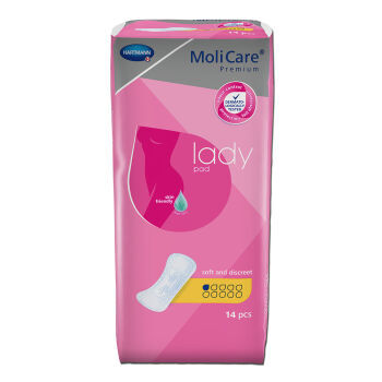 Molicare Premium Lady Pads are especially designed for light to moderate incontinence. The anatomically shaped pad can be fitted securely and discreetly in firm fitting underwear or MoliCare Premium Fixpants. Range of absorbencies and sizes.