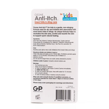 OZONE Anti-Itch™Bite & Sting Kids is a roll-on stick that is portable with an easy-to-use applicator that soothes insect bites and stings. It is a Pharmacist recommended formula to support in the fast and effective management of bites and stings associated with most insects including mosquitoes, bees, wasps, mites and sandflies.