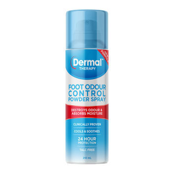 Dermal Therapy Foot Odour Control Powder Spray is a unique, triple active action formula that effectively achieves total control over foot odour. The triple active action works as follows: