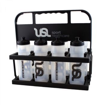 The USL Sport Drink Bottle Carrier is a plastic water carrier, that folds down flat for storage and transport.