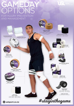 The USL Sport Game Day Edge E.A.B is a quality club-level product that is competitively priced. The fabric is 100% cotton with an excellent adhesive quality. The stretch capability and conformability make this product excellent for providing additional compression and support. Ideal for use in conjunction with the range of USL Sport Premium or Game Day Rigid Tapes.